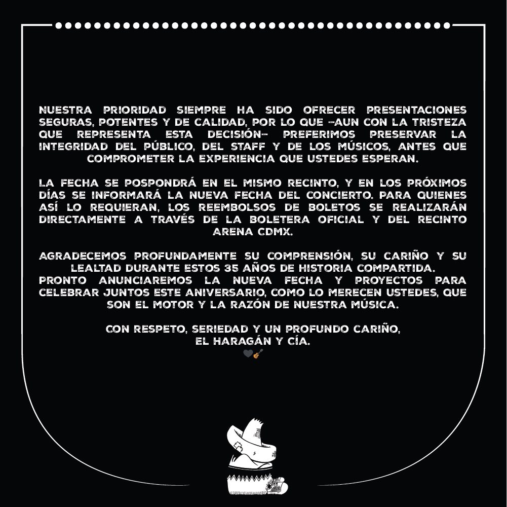 “El Haragán y Compañía ha sido siempre una institución de respeto, disciplina y amor por el rock”, se lee en uno de los mensajes de apoyo publicados por sus seguidores. “Lo que ocurrió no es culpa de la banda, sino de una empresa que no cumplió su palabra”.