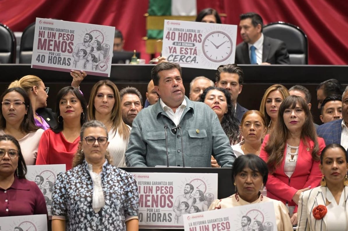 Pedro Haces Barba, diputado federal, coordinador de operación política y líder sindical de la Confederación Autónoma de Trabajadores y Empleados de México (CATEM), presentó en tribuna el dictamen de las leyes secundarias para implementar la jornada laboral de 40 horas, al señalar que esta reforma no es un freno a la productividad, sino una oportunidad para hacerla más eficiente y sostenible.