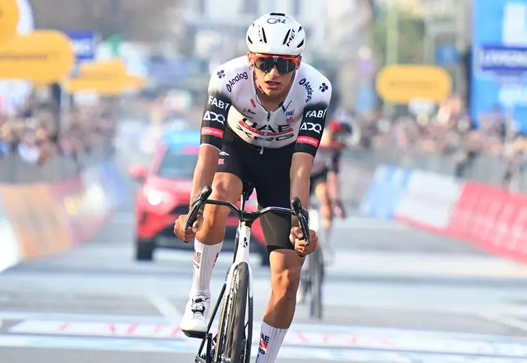 Cuando faltaban 10.9 kilómetros para que acabara el Giro, Del Toro realizó su ataque en la subida para irse en solitario hasta la meta. También significó el triunfo número 95 para el UAE Team Emirates.