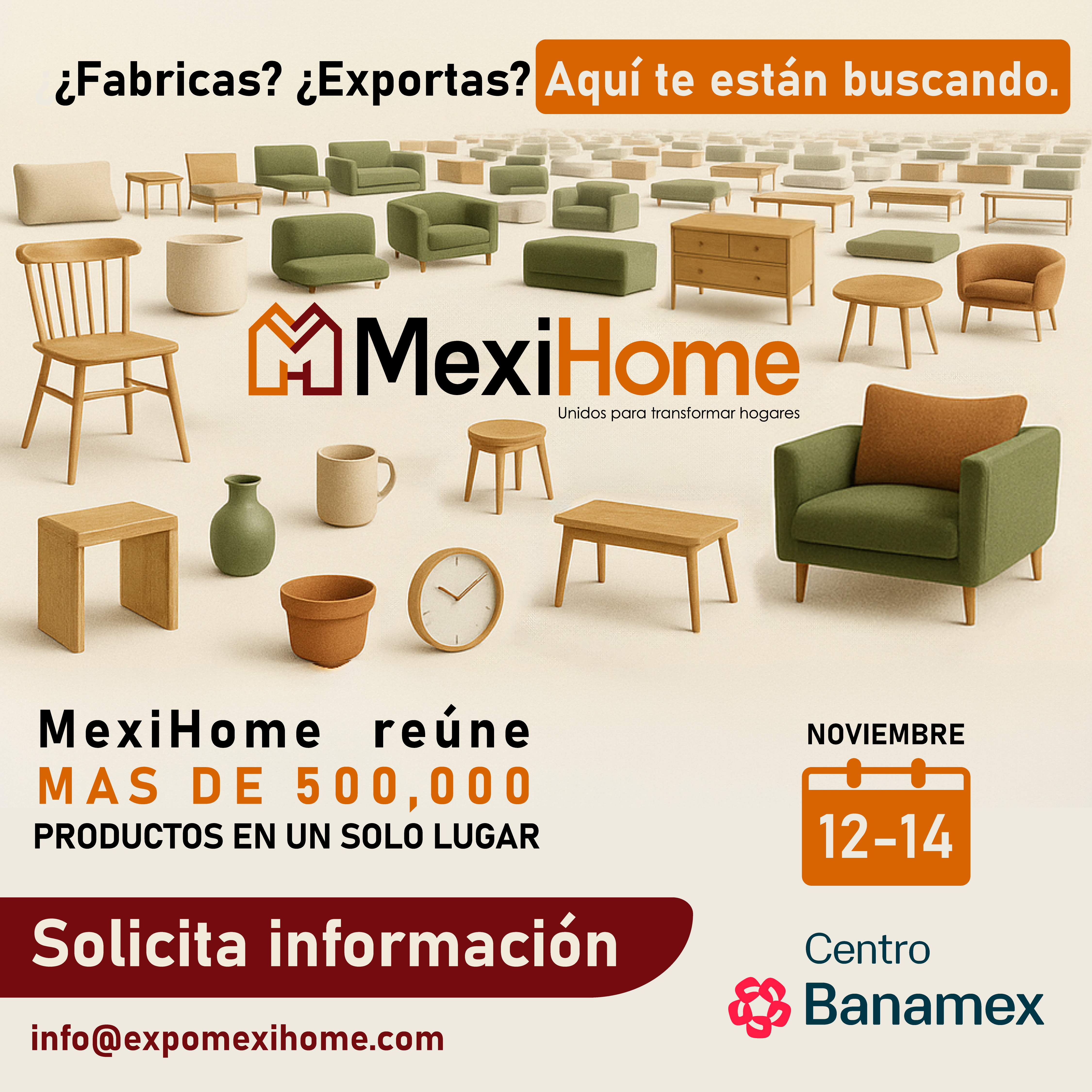 MexiHome – Unidos para transformar hogares es la primera exposición B2B en México especializada en artículos para el hogar. Diseñada para impulsar el desarrollo comercial del sector, su objetivo es conectar a fabricantes, marcas y proveedores con compradores profesionales en un entorno estratégico, eficiente y cuidadosamente estructurado. Organizada por Eruwise Exposición, MexiHome se enfoca en categorías clave como hogar inteligente, decoración, jardinería, artículos de oficina, cuarto y baño, y reúne a comercializadoras nacionales, marketplaces, hoteles, diseñadores, cadenas especializadas y responsables de proyectos corporativos e institucionales, consolidándose como la plataforma de referencia para el negocio del hogar en México.