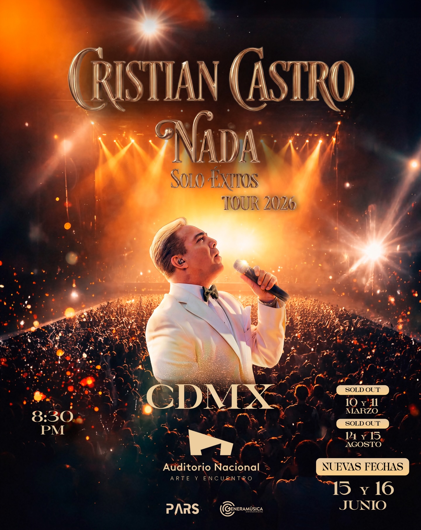 El concepto de “Nada. Solo éxitos Tour” se plantea como una revisión directa y poderosa de ese legado musical. En un formato que privilegia la cercanía con la audiencia, el espectáculo reúne los momentos más emblemáticos de su carrera y confirma por qué Cristian Castro sigue siendo una de las voces más representativas del pop romántico en español.